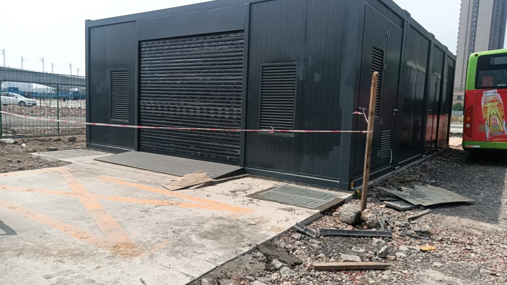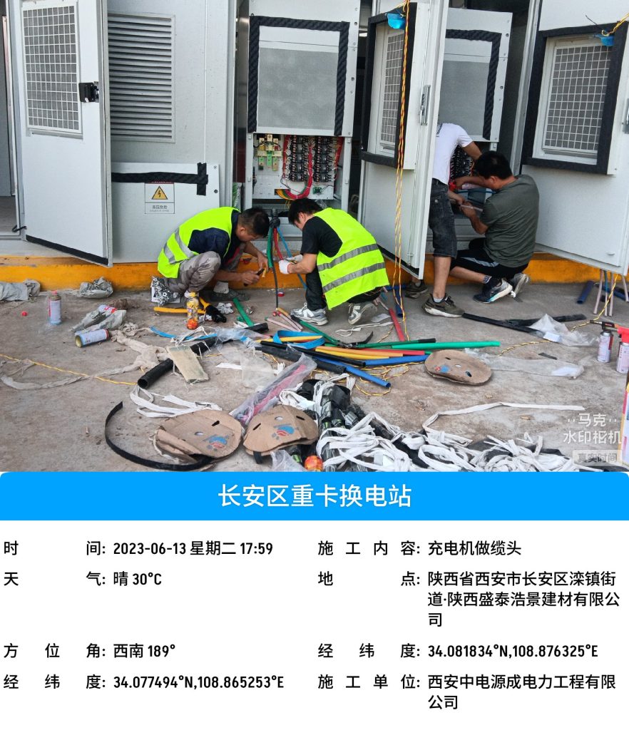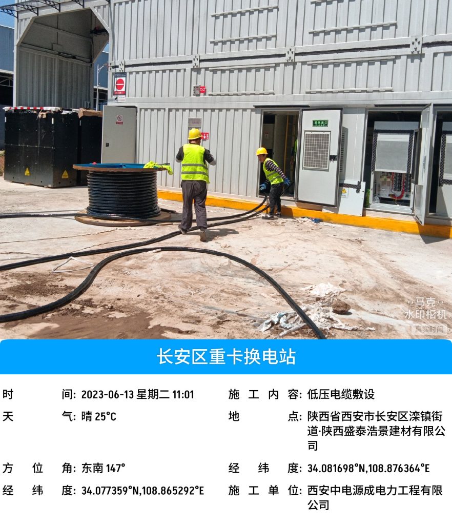 JL汽车在陕西地区建的第一个重卡换电站,我们很容易有幸承接该项目的总承包。项目安装SCB13-2500kVA-10/0.4kV箱式变1台为换电站提供电源,外线部分与场内硬化及换电站建设分为两个包,同时进行了施工。